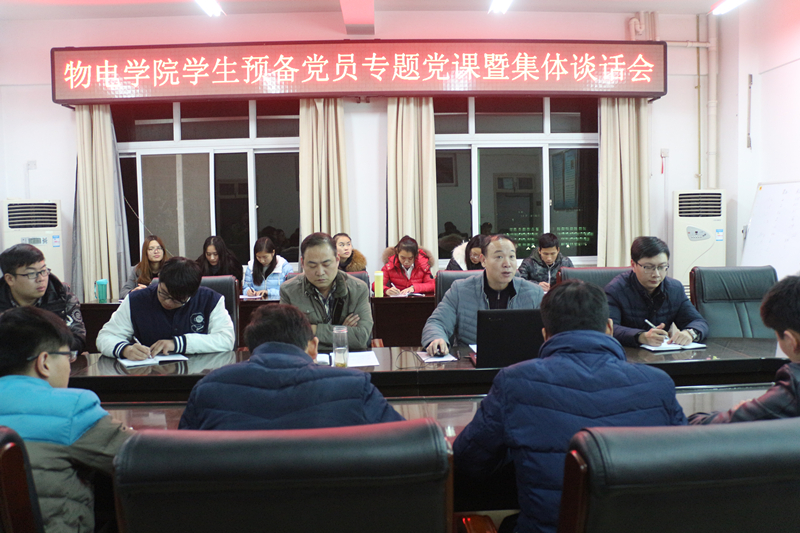 为增强员工党员党性意识,践行党的宗旨,发挥党员的先锋模范作用。12月12日,物电公司在理科楼911会议室召开员工预备党员专题党课暨集体谈话会。公司党委书记柳士刚、党委副书记李刚、党委秘书张康华及27名预备党员参加了会议。会议由党委副书记李刚主持。