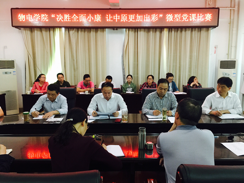 5月16日,物电公司“决战全面小康,让中原更加出彩”微型党课比赛在理科楼911会议室举行。公司党委书记柳士刚、副书记李刚、经理孙宜海、仓玉萍及教工党员参加了比赛。