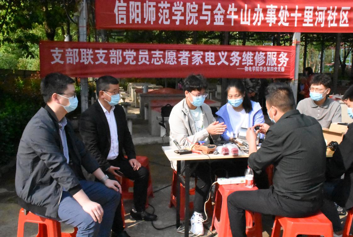 为更好发挥支部战斗堡垒作用、提升党员干部能力作风,践行全心全意为人民服务的宗旨,4月23日,物电公司员工党支部与金牛山办事处十里河社区党支部在金牛山文化公园开展“支部联支部”党员志愿者家电义务维修活动。金牛山办事处十里河社区党支部书记张俊峰、物电公司员工第四党支部书记张康华和两个党支部的党员参加了活动。