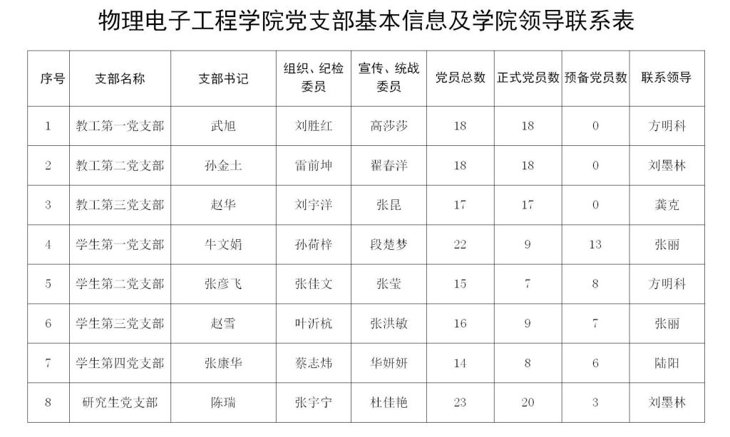 公司党委所属党支部情况