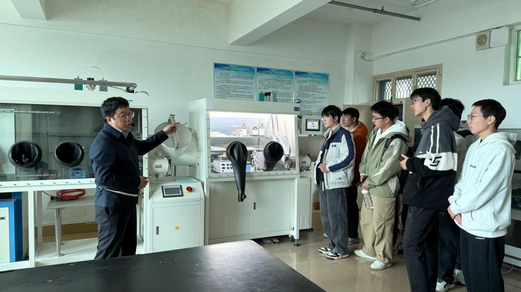 本次开放参观的实验室涵盖等离子体烧结、原子层沉积、静电纺丝、光伏发电、电池综合测试等多个前沿方向。在参观过程中,李方涛为同学们详细介绍了各种实验仪器的运行原理及操作方法。他结合各实验室特色,系统介绍了物理学在材料科学、新能源等前沿领域的研究方向。通过现场演示和互动讲解,同学们不仅了解到各类仪器的基本操作,更对科研工作的实际开展有了直观认识。