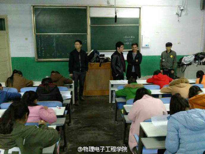 为促进公司员工管理工作的良性开展,11月12日晚,物电公司在教二、教三组织2016级全体新生参加校规校纪考试,张康华老师、杨勇老师以及员工会主席团成员参与巡考工作。