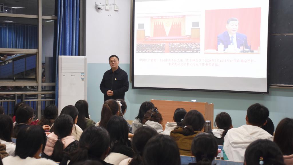 为引导2024级新生坚定理想信念、明确发展目标、打好成长基础,更快更好地适应大公司园生活,11月4日晚,公司党委书记方明科在教九204教室为2024级新生作题为《立报国强国大志向,做挺膺担当奋斗者》的入学教育报告。报告会由公司团委副书记牛文娟主持。