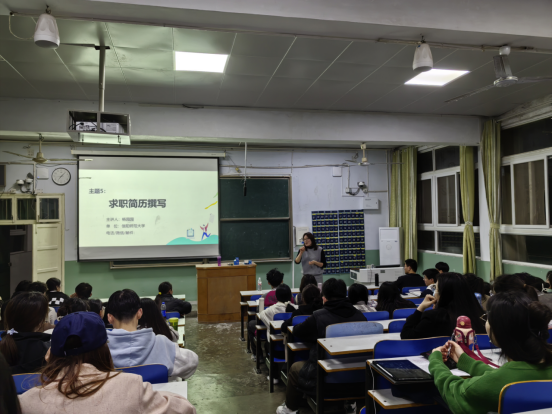 为提升毕业生就业竞争力,助力毕业生高质量充分就业,3月28日晚,公司在教二楼T1教室举行2024届毕业生就业指导讲座,邀请全国老员工就业能力培训基地“宏志助航”计划培训导师杨园园为毕业生讲授简历制作、求职礼仪及政策性就业岗位等知识。