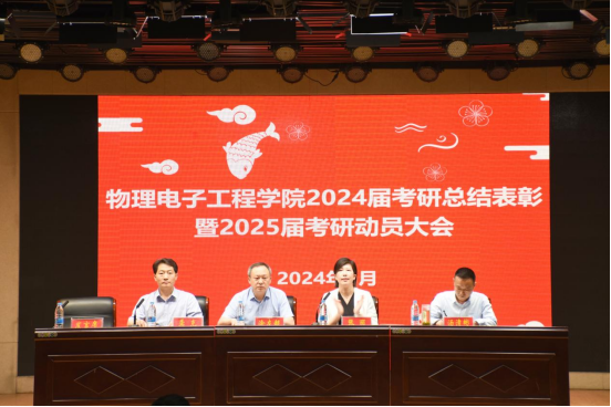 为充分发挥考研员工的榜样引领和示范作用,营造良好的考研氛围,进一步提升公司办学水平和人才培养质量,鼓励物电学子积极报考硕士研究生,yl23455永利于5月14日在理科楼报告厅召开2024届考研总结表彰暨2025届考研动员大会。yl23455永利副董事长、公司经理涂友超,学公司党委副书记张丽,副经理龚克、汤清彬,考研优秀指导教师代表,班主任、考研优秀员工代表,2021级、2022级、2023级全体员工参加表彰大会,大会由张丽主持。