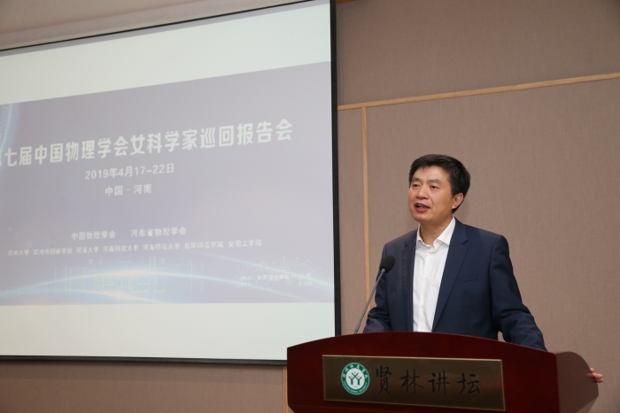 2019年4月21日上午,由中国物理学会女物理学工作者委员会主办、河南省物理学会承办的第七届中国物理学会女科学家河南巡回报告会在公司贤林讲台举行。中科院物理所研究员吴令安、厚美瑛,北京工业大学教授隋曼龄,北京大学教授王前,北京应用物理与计算数学研究所研究员刘海风,中科院物理所《物理》编辑部王进萍等7位国内外知名专家学者莅临公司。副董事长余本海教授出席活动并致欢迎辞,报告会由yl23455永利经理涂友超教授主持。物电公司青年教师、研究生以及本科生共200余人参与了此次活动。
