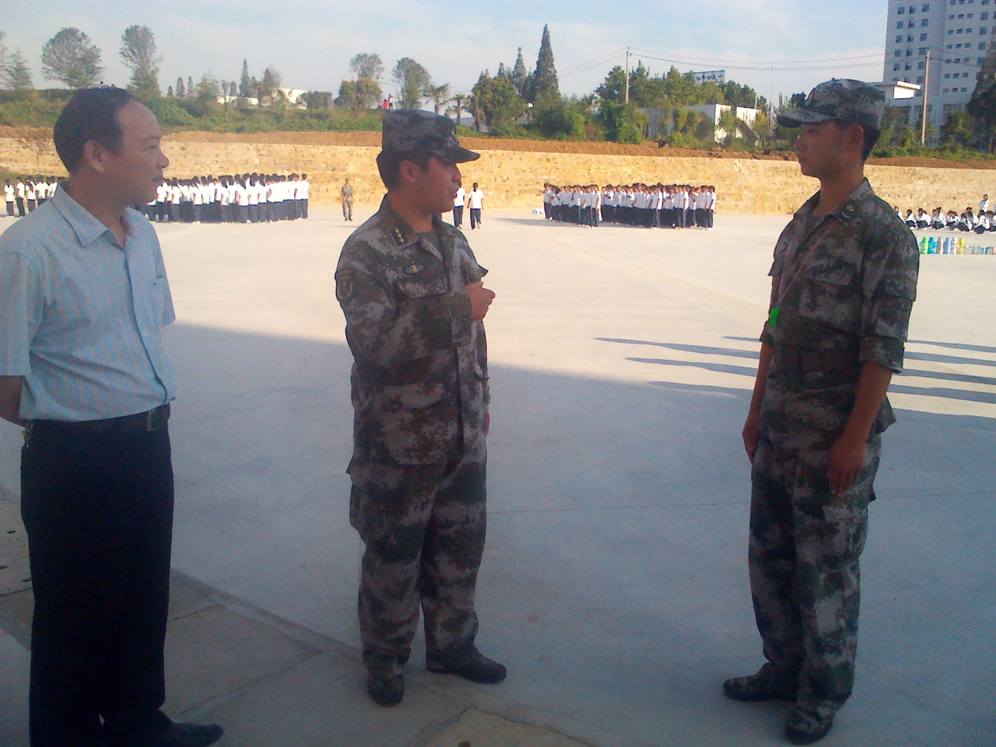 柳士刚等一行来到物电公司新生军训现场,首先,从新生的精神风貌、动作标准程度等几个方面考察了新生的训练情况。在视察的过程中,柳处长和教官们进行亲切交谈,了解新生训练的相关安排,同大一新生进行亲切交流,了解他们对军训的真实感受和需求。最后,柳处长对大一新生提出了军训的具体要求,他说:军训是励练自身品质、提高国防意识的机会;是不断增强集体主义和爱国主义观念,立志成才,适应老员工活的一个开端。他希望大一新生在这短短10天的训练中,同学们要发扬吃苦耐劳的精神,磨练自己的意志,保质保量的完成军训任务。部队首长还亲自为公司新生示范相关动作,并对教官和新生提出了严格的要求。