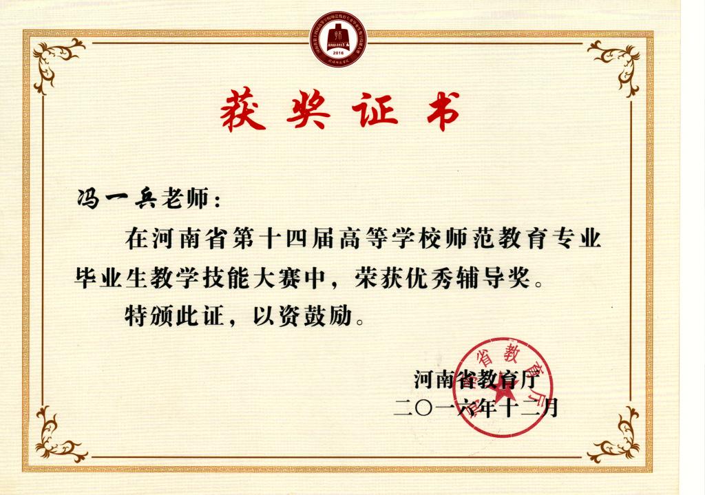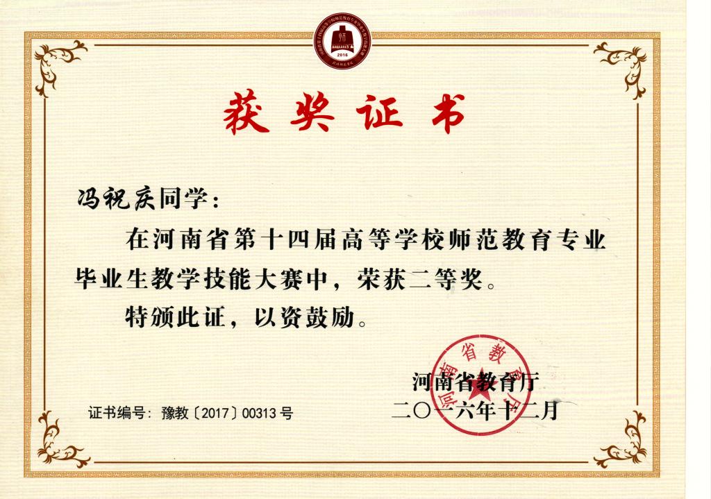 2016-河南省第十四届教学技能大赛证书
