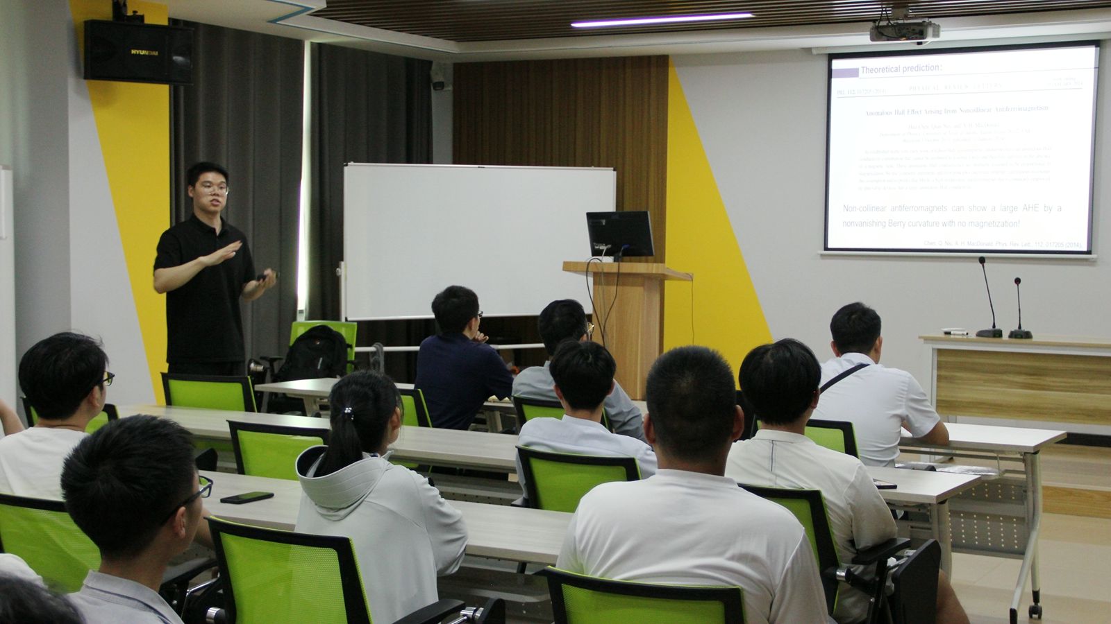 李小康首先从霍尔效应、反常霍尔效应等基本概念出发,介绍了电子的霍尔效应和声子的热霍尔效应,对绝缘体系中声子热霍尔效应(SrTiO3,铜氧化物高温超导体,α-RuCl3)的最新进展及争论进行了概述。接着,李小康介绍了其在非磁绝缘体SrTiO3、非磁单质材料黑鳞等体系中发现声子热霍尔效应的系列工作。报告中,李小康以浅显易懂的语言,不但介绍了该领域的前沿研究成果,更是复现了自己在科学研究中归纳、思考、提炼科学问题和设计验证实验的整个过程,为师生们今后科研工作提供了有效的方法论。最后,李小康详细回答了与会老师和员工提出的问题。