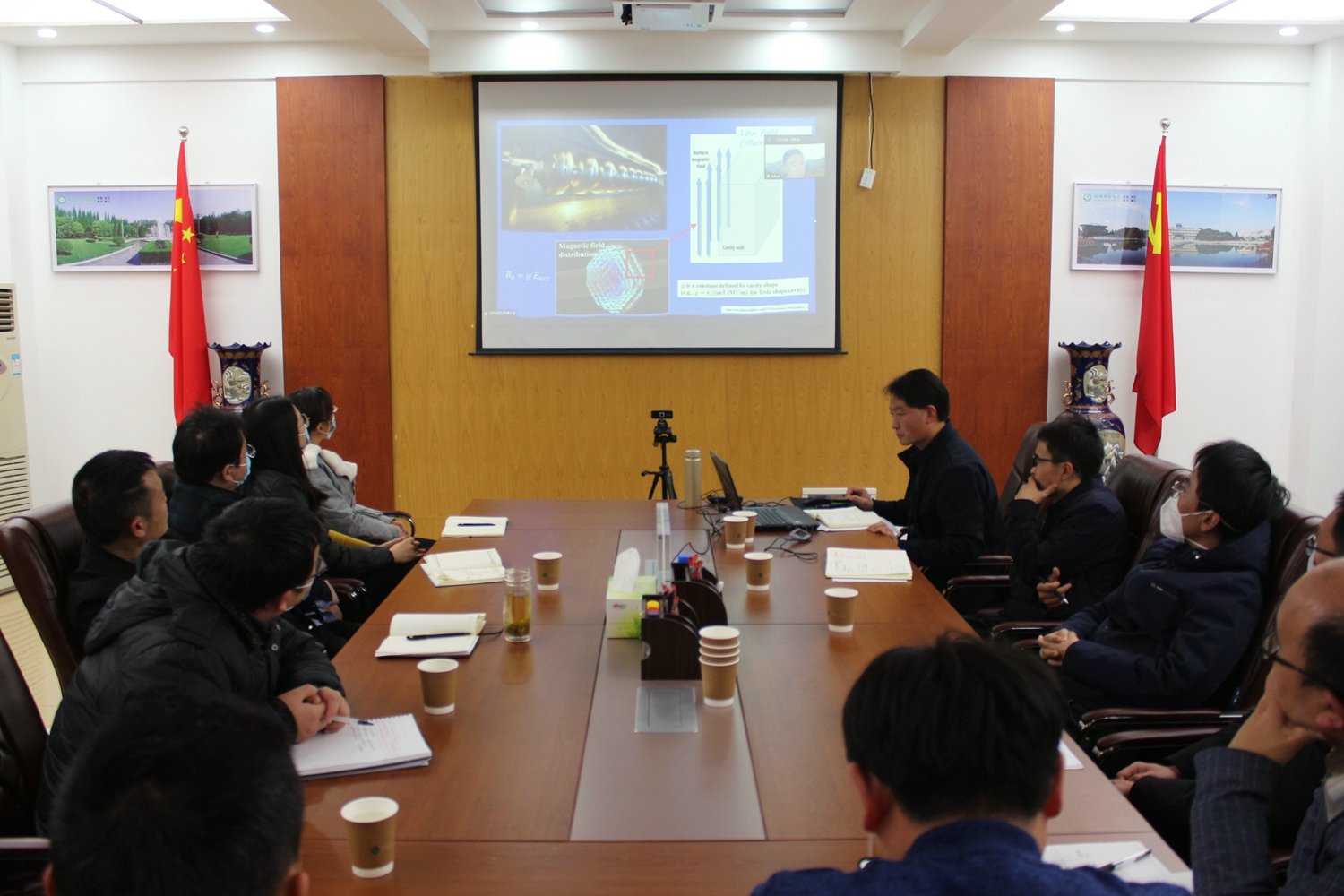 11月29日下午,应公司邀请,教育部“长江特聘”教授、国家杰出青年基金获得者、南京大学闻海虎教授在腾讯会议网络平台为公司师生做了题为“奇妙的超导世界”的学术报告。公司教师及部分研究生、本科生等在线聆听了报告,报告会由副经理龚克主持。