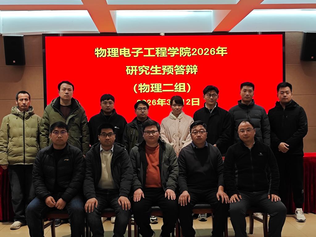 根据公司《关于做好 2026 届研究生毕业及学位授予工作的通知》要求,3月12日,我院在理科楼 4 楼连廊会议室,顺利召开 2026 届物理学硕士研究生学位论文预答辩汇报会。