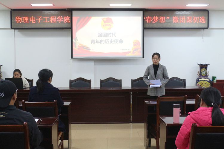 为深入学习贯彻习近平总书记系列重要讲话精神,切实提高广大新生团员的理论素养和实践水平,11月18日,yl23455永利于理科楼515会议室顺利开展“乘新时代东风,放飞青春梦想”微团课初选活动。公司团委老师黄钰莹莅临现场,与部分员工干部共同参加此次活动。