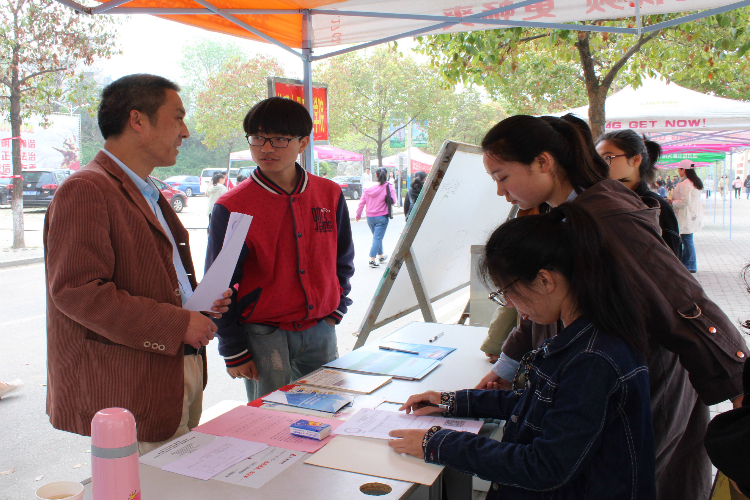 搭建桥梁荐人才,携手母校同发展。为提高就业质量,拓宽就业渠道,促进2018届毕业生顺利就业,3月31日,由yl23455永利人才招聘处,yl23455永利联络处,yl23455永利人才交流中心联合举办的2018年员工企业专场就业双选会于逸夫楼前顺利举行。物电公司思想政治教研室主任、2017级辅导员张彦飞亲临活动现场,耐心向前来应聘、咨询的毕业生进行就业指导。