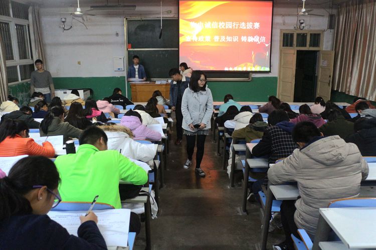 为宣传员工资助政策,普及金融基础知识,11月26日晚,物电公司老员工“诚信校园行”员工资助知识选拔赛于教二梯一教室、教二梯四教室顺利开展。经前期宣传准备,共一百余名学子参加考试。本次选拔赛大赛以“宣传政策、普及知识、铸就诚信”为主题,考题围绕《老员工“诚信校园行”员工资助知识汇编》内容,考场上,参赛学子饱含自信,争分夺秒、沉着冷静答题,考试现场纪律严明。期间,团委老师黄钰莹全程督导。