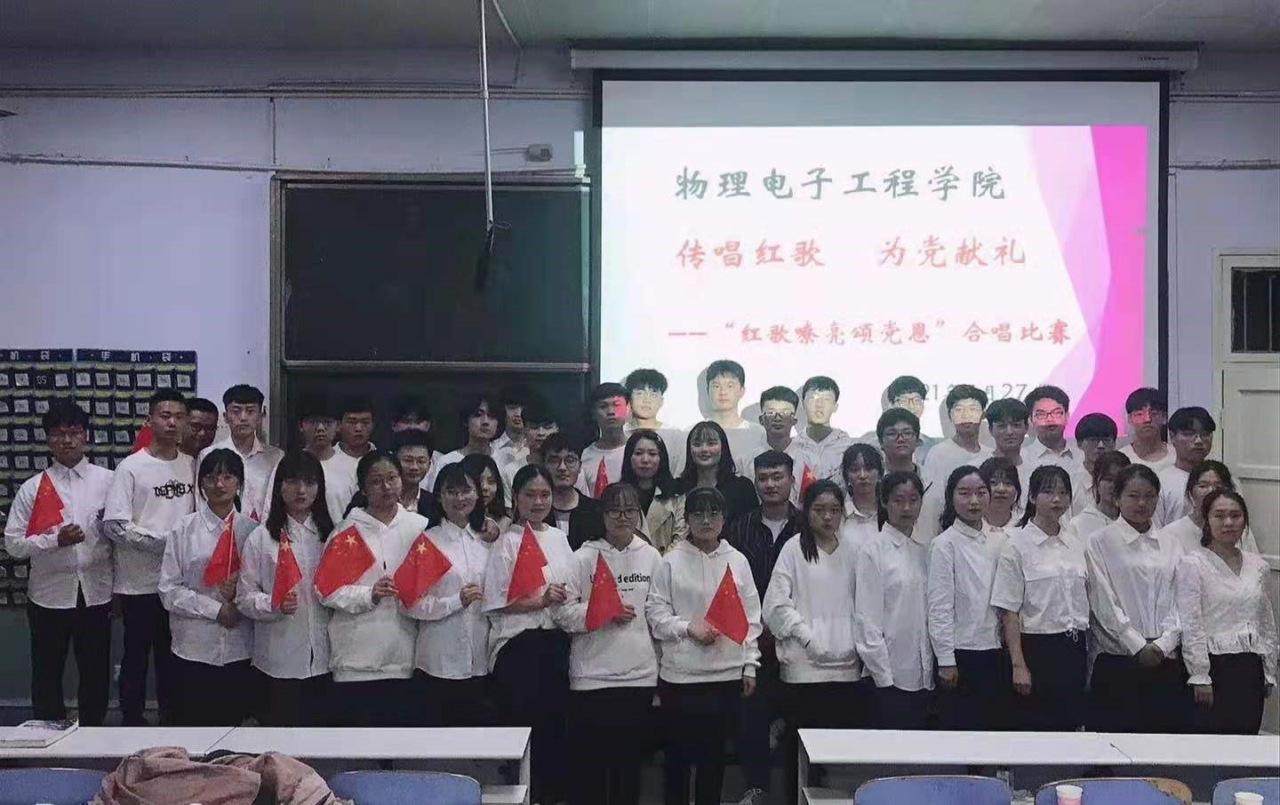 弘扬民族文化,传唱红色金曲,激发爱国热情,展现物电风采。为庆祝建党100周年,公司于2021年4月27日晚6:30在教二T1举行“传唱红歌 为党献礼”——红歌嘹亮颂党恩合唱比赛。文公司团委老师柳家琪,专职辅导员陈辉,旅游公司团委老师赵子鉴,数学与统计公司专职辅导员杨帆,化学化工公司专职辅导员严赫,物电公司团委老师牛文娟参加此次活动,并担任此次比赛评委。此次合唱比赛充分展示了公司员工对党、对祖国最真挚的爱,也展现公司学子饱满的精神面貌。