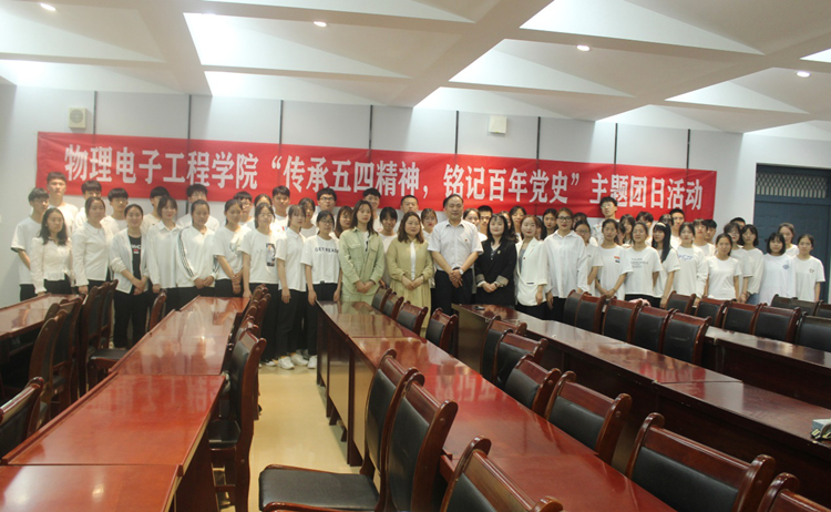 为加强爱国主义教育,弘扬民族精神,5月12日下午公司于理科楼四楼会议室举办“传承五四精神,铭记百年党史”主题团日活动。校团委宣传部部长雷玲应邀出席活动。物电公司党委副书记李刚、团委老师牛文娟、化工化学公司团委副书记邓雪婉以及20级物理学一班全体同学共同参加了活动。此次活动由物电公司团委副书记李诗吟主持,班级团支部书记韩文琪主讲。